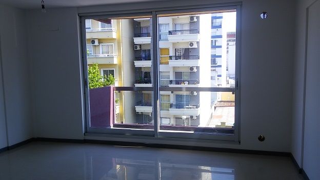 Ambiente con pisos en porcelanato de grandes dimensiones y salida a balcon al frente.